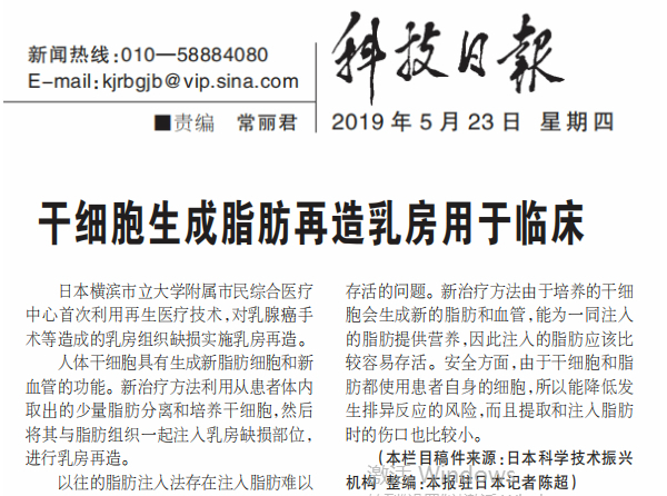 日本橫濱市立大學附屬市民綜合醫(yī)療中心首次利用再生醫(yī)療技術,對乳腺癌手術等造成的乳房組織缺損實施乳房再造。人體干細胞具有生…