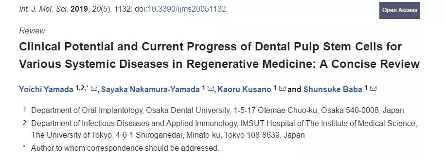 最近,日本大阪牙科大學(xué)在《國際分子科學(xué)雜志》發(fā)表了一篇探討《牙髓干細(xì)胞治療各種系統(tǒng)性疾病的臨床潛力及進(jìn)展》的報告。牙髓干…
